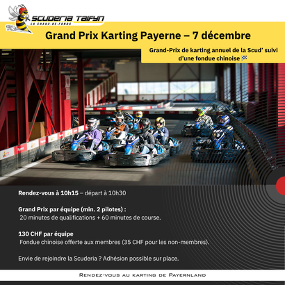 La Scuderia Taifyn vous donne rendez-vous pour son Grand Prix annuel au Karting Indoor de Payerne !